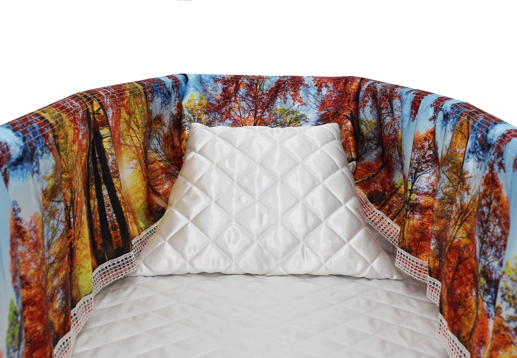 12-inch Printed Satin frill to be attached to the lip of the coffin/casket. Please note the image shows a mattress and pillow which are NOT included.