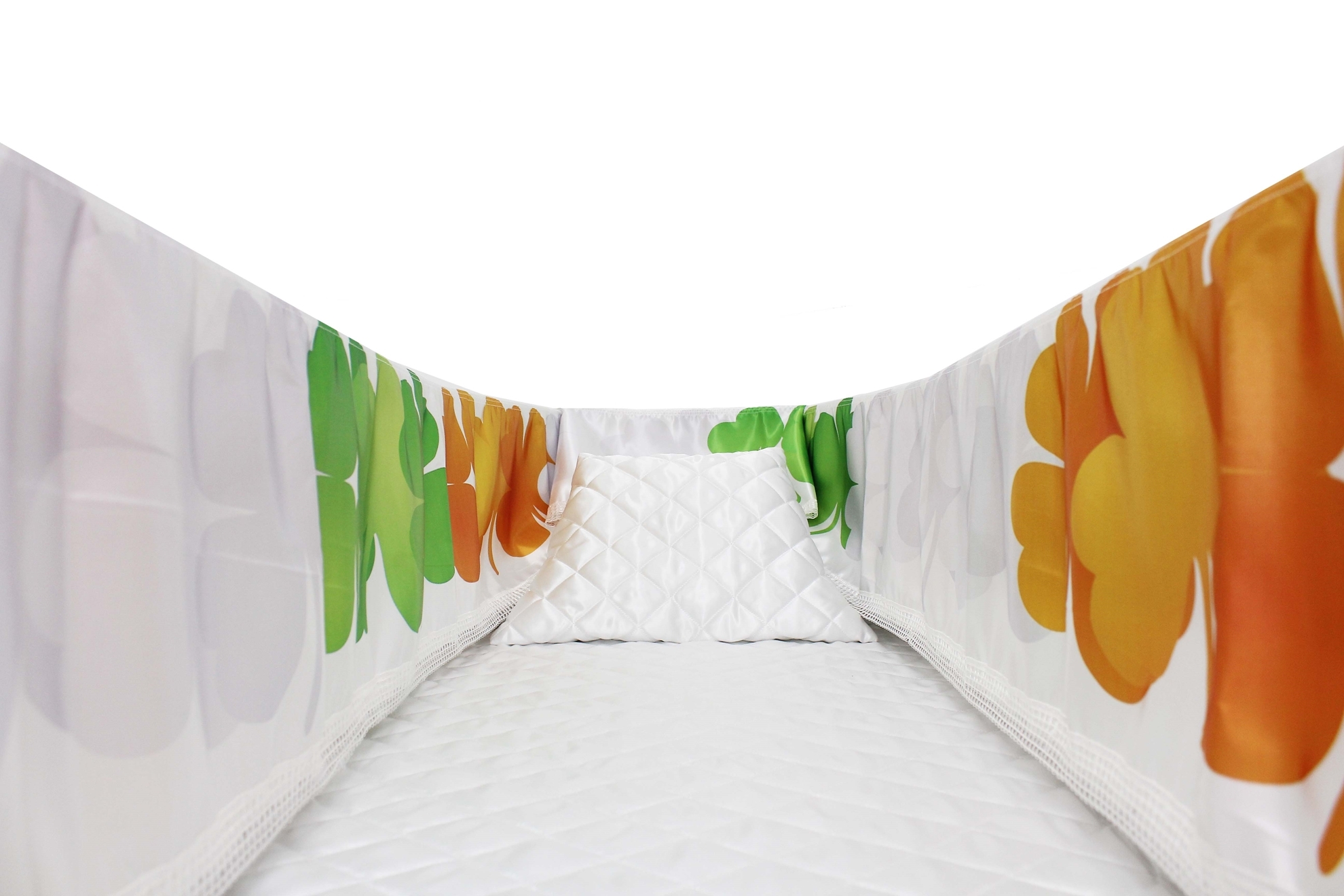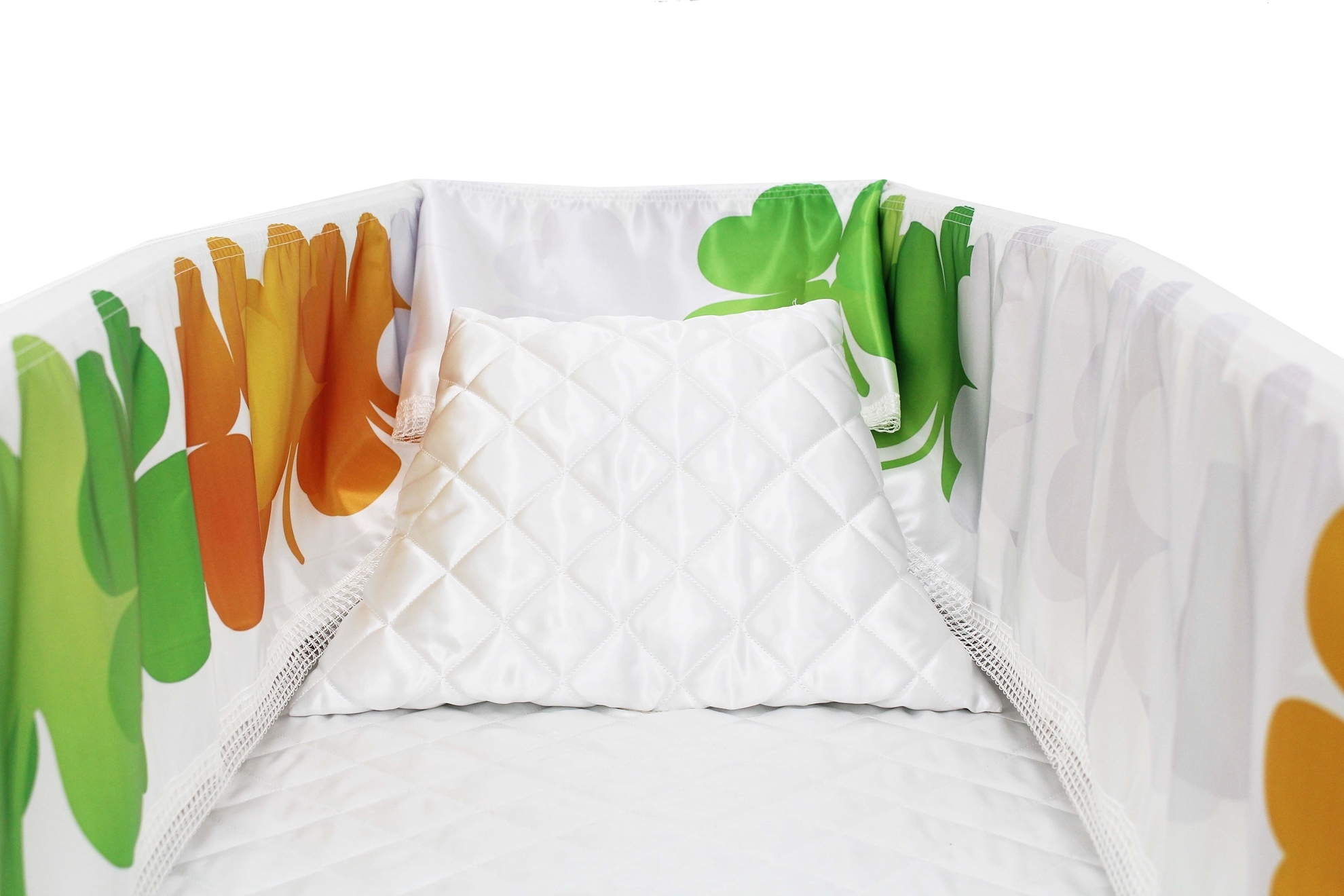 Luxury Satin 18-inch 2-way frill consisting of a 12-inch internal frill with an additional 6-inch exterior frill. The chosen design will be printed on the 18" 2-Way Frill. Please note the image shows a mattress and a pillow which are NOT included. Image is to illustrate style of Interior Only.